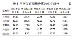 营养价值。聚合草的各种营养成分的含量及其消化率都高于一般牧草富含的蛋白质和维生素。据报道,开花期聚合草鲜草干物质中含粗蛋白质24.35%,粗脂肪5.90%,粗纤维10.52%。另外,鲜草中粗蛋白质一般在3%,还含有大量的尿囊素和钴胺素。聚合草营养含量从莲座到结实期,粗蛋白依次减少,粗纤维依次增加。从聚合草干物质的总养分看结实期粗蛋白质含量很高,粗纤维含量较低。另据报道,聚合草叶中粗蛋白含量超过了甜菜叶和西粘谷等饲料菜,仅次于豆科牧草苜蓿和草木樨。详见表1。
