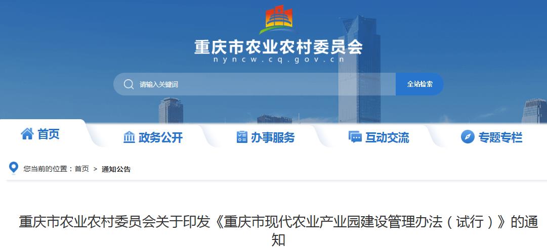 《重庆市现代农业产业园建设管理办法(试行)》最新通知!